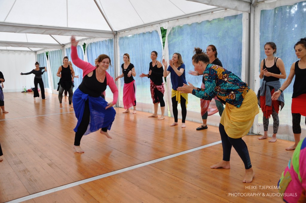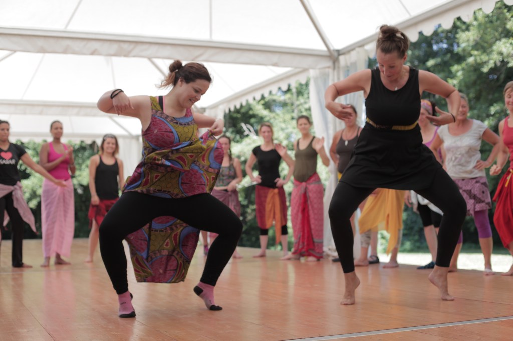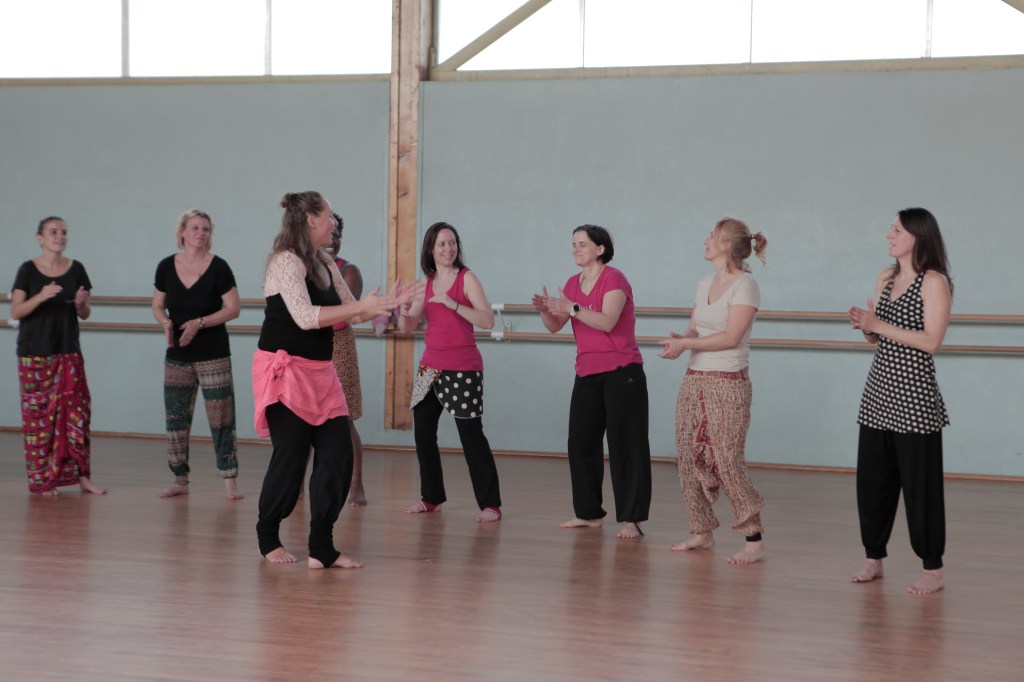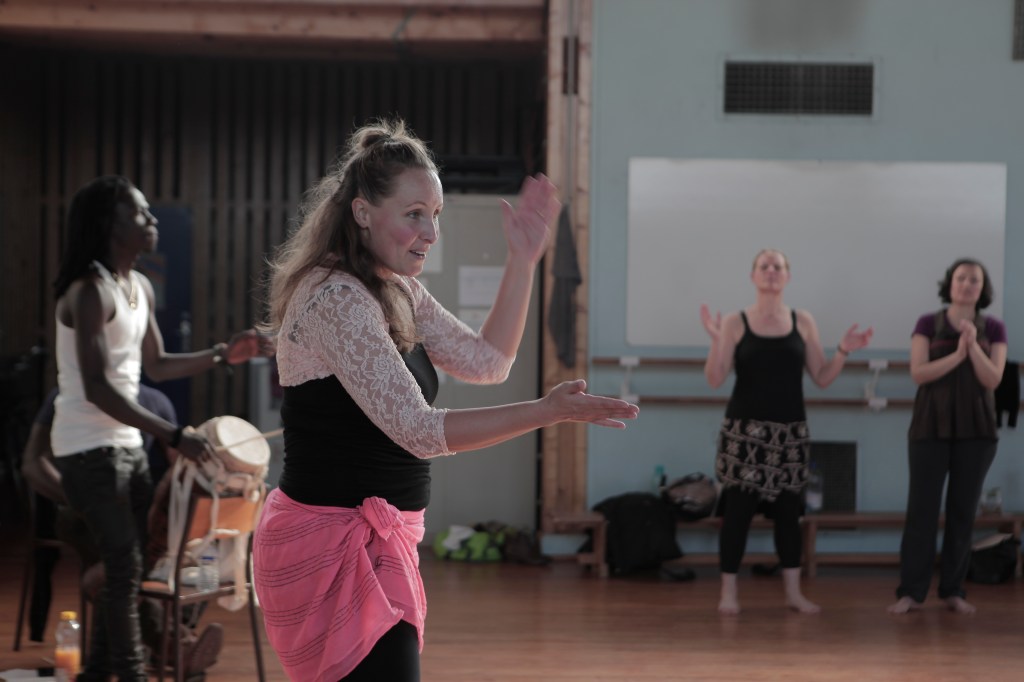 Her method (sing it! play it! dance it!) is thought through, and her 20 years of teaching experience allow her to guide each dancer on their dance journey. The connection with drummers and rhythms is central to her approach. “We take time to study the rhythm, sing the different accompanying parts, find the temps fort and the temps faible. We learn about rhythms before we dive into exploring the vocabulary of any particular rhythm. What we sing, what we drum and what we dance is the same thing. Understanding that logic is key to beginning to access sabar.