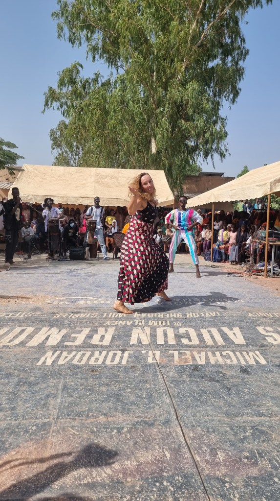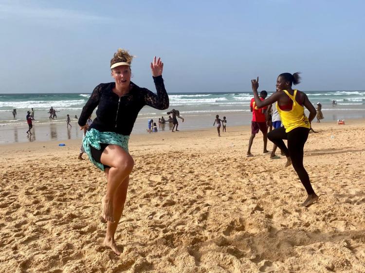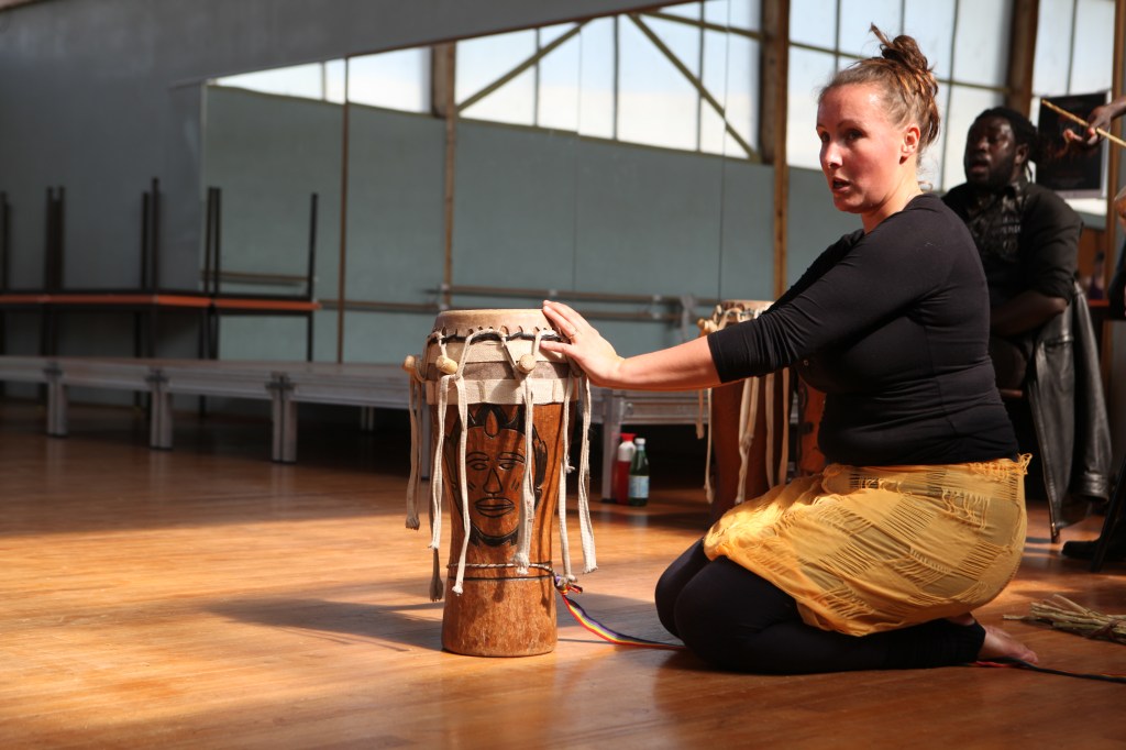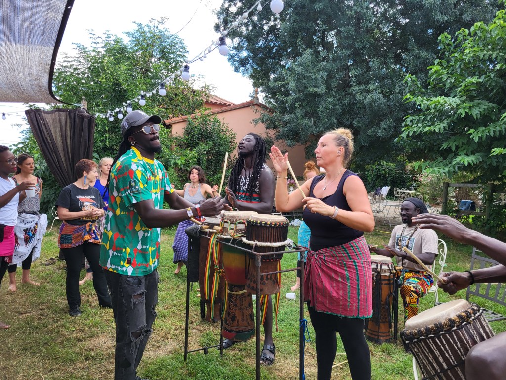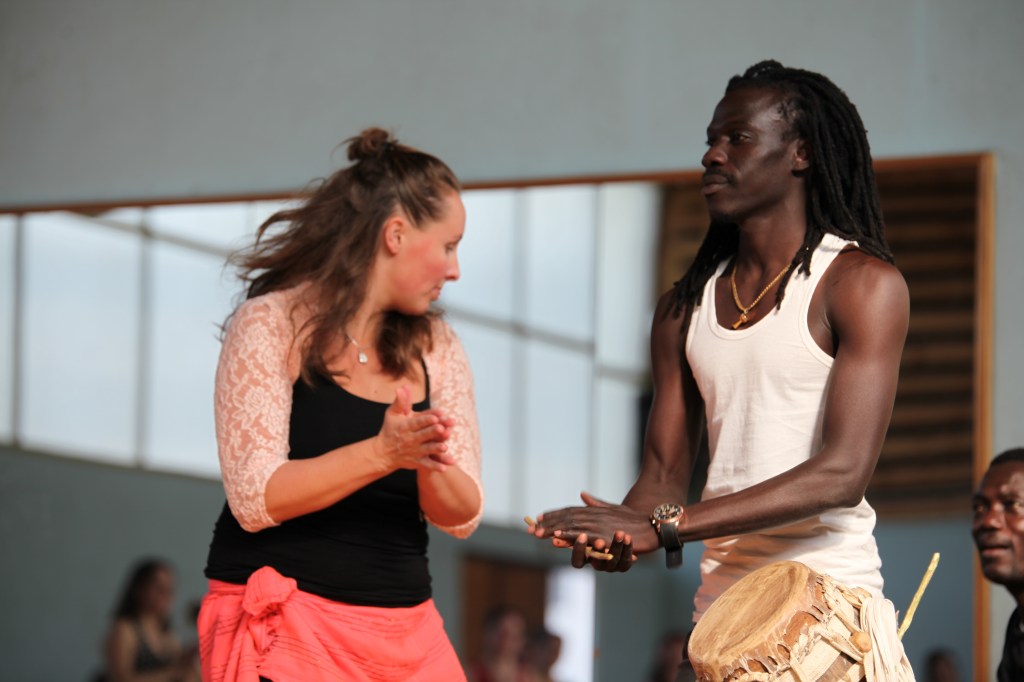 What characterises Sophie’s teaching is the deep, explicit and lively connection she has with the musicians. This connection is at the heart of her teaching: it reflects the very essence of sabar, where dance is inseparable from music and rhythm. Sabar dancers are in constant dialogue with the musicians — a nourishing, open dialogue rich in exchange. Sophie creates a space in which the drummers’ words and knowledge are fully recognised, valued and directly transmitted. She gives them a real place and real time. She gives them the credit they deserve, and it shows.